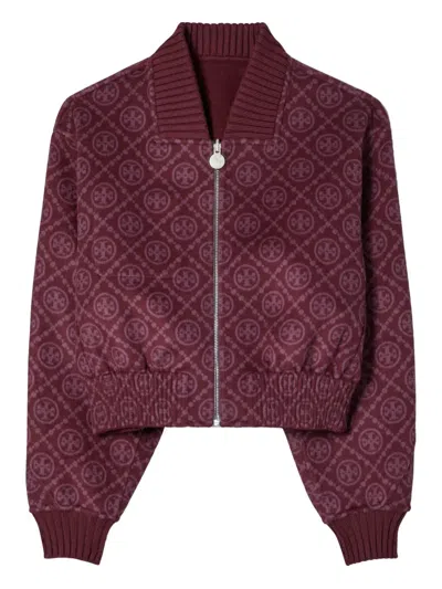 TORY BURCH Monogram-pattern Wool Jacket In Burgundy
