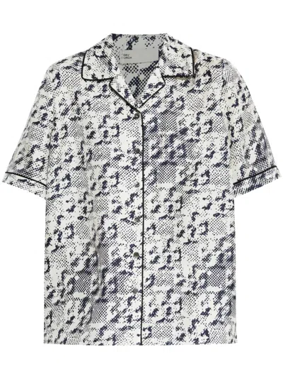 white monogram pattern front button fastening short sleeves
