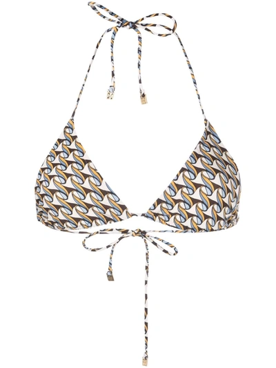 About The Brand: Empowering, Colorful, And Distinctly American Designs. Printed Triangle Bikini Top In French Cream Ribbon Wave With Gold-Tone Hardware This Is A Top Only, Coordinating Bottom Sold Separately Self-Tie Neck And Back Closures 71% Nylon, 29% Lycra Elastane Hand Wash Imported
