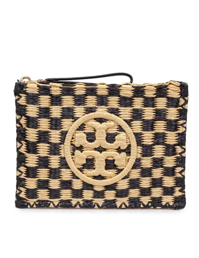 TORY BURCH Pouch Ella In Raffia Natural And Black In Brown