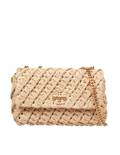 TORY BURCH Small Woven Shoulder Bag With Sliding Chain In Neutral