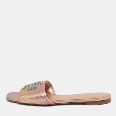 Pre-owned Rose Gold Python Embossed Leather Ines Flat Slides Size 37.5 In Metallic