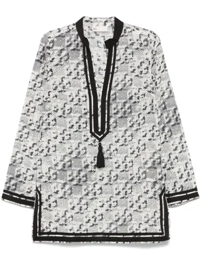 TORY BURCH T Monogram Print Silk-blend Tunic In Multi