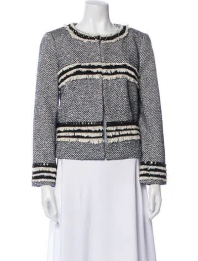 Tory Burch Jacket Blue Tweed Pattern Fringe, Sequin & Crystal Accents Collarless Hook and Eye Closure Fit: Jackets by Tory Burch typically fit true to size. | Tory Burch Tweed Pattern Jacket w/ Tags in Blue, Women's US 8 | M