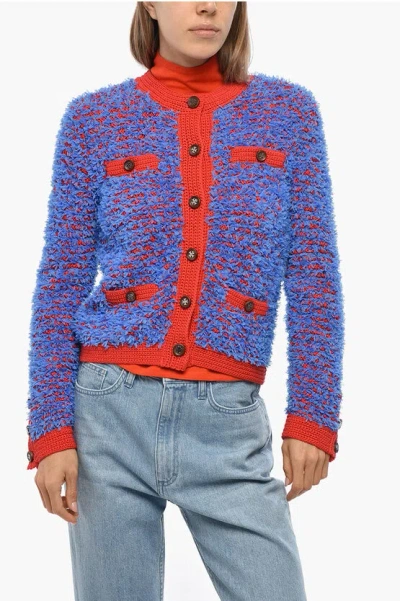 TORY BURCH Tweed Wool Confetti Cardigan In Blue
