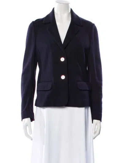 Tory Burch Wool Blazer Black & Blue Pointed Collar Button Closure Fit: Jackets by Tory Burch typically fit true to size. | Tory Burch Wool Blazer in Black/Blue, Women's M