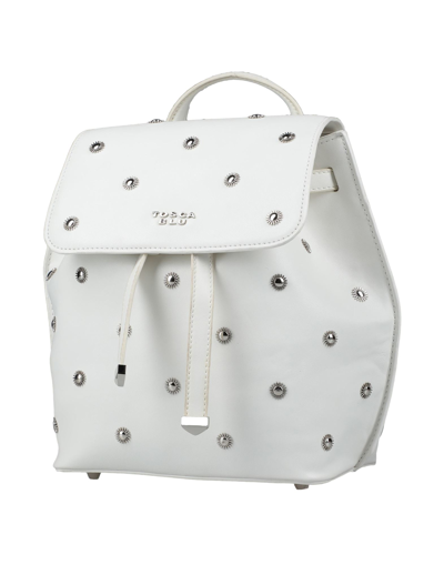 TOSCA BLU Backpacks. medium, coated fabric, metal applications, brand logo, solid colour with appliqués, fully lined, drawstring closure, flap closure, internal zip pocket, bottom with studs, daytime. 100% Polyurethane