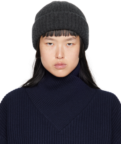TOTÊME Gray Chunky Brim Beanie In 359 Dark Grey Melang