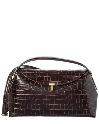 TOTÊME Toteme T-lock Croc-embossed Leather Top Handle Shoulder Bag In Black