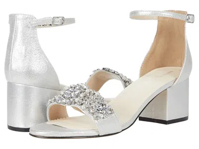 Touch Ups Devon - Women's Shoes : Silver : Enhance your look with the glamorous design of the Touch Ups Devon heeled sandal. ; Open toe sandal silhouette with wrapped heel. ; Shimmery synthetic upper with rhinestone detail and adjustable ankle strap, featuring buckled closure. ; Soft synthetic lining. ; Lightly padded synthetic insole. ; Synthetic outsole features textured heel for grip. ; Imported. Measurements: ; Heel Height: 2 1 4 in ; Weight: 10 oz ; Product measurements were taken using size 9, width M. Please note that measurements may vary by size. | Touch Ups Devon Women's Shoes Silver : 6.5 M, Synthetic