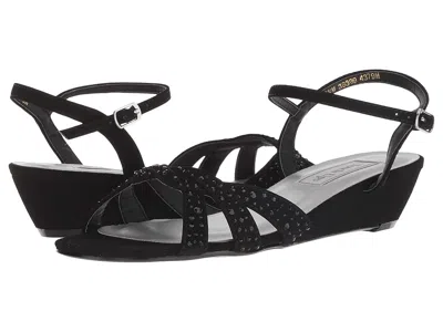 Touch Ups Lena - Women's Shoes : Black : Stand out in all the right ways when step out in the Touch Ups Lena wedge sandal. ; Metallic fabric upper. ; Ankle strap with buckle closure. ; Rounded open toe. ; Synthetic lining. ; Lightly padded footbed. ; Covered wedge heel. ; Synthetic sole. ; Imported. Measurements: ; Heel Height: 1 1 2 in ; Weight: 7 oz ; Product measurements were taken using size 7.5, width W. Please note that measurements may vary by size. | Touch Ups Lena Women's Shoes Black : 9 M, Textile