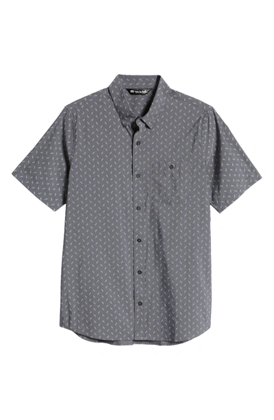 TRAVISMATHEW Dig Down Short Sleeve Button-up Shirt In Heather Black
