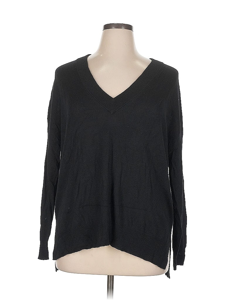 Treasure & Bond Pullover Sweater, Size: X-Large. Item Details: Black, V Neck, Long Sleeve, Women's Tops, Viscose/Nylon/Polyester