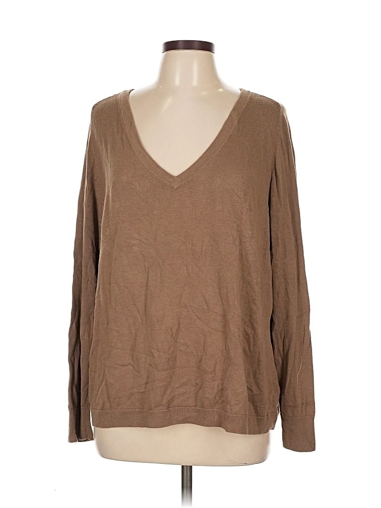 Treasure & Bond Pullover Sweater, Size: X-Large. Item Details: Brown, V Neck, Long Sleeve, Women's Tops, Viscose/Nylon/Polyester