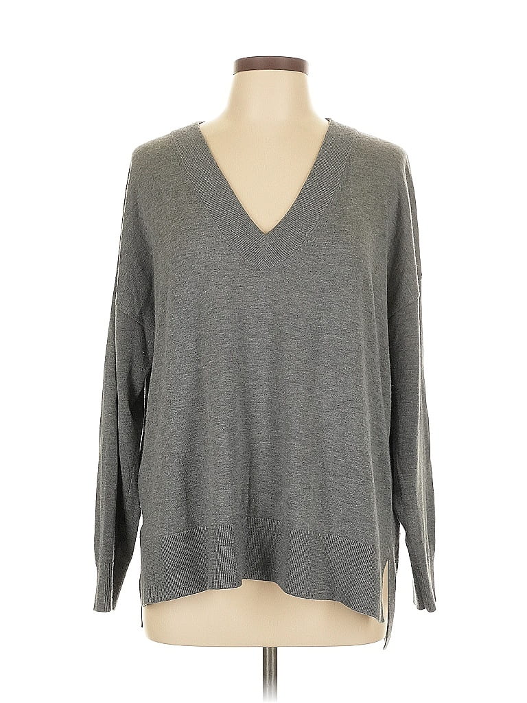 Treasure & Bond Pullover Sweater, Size: Large. Item Details: Gray, V Neck, Long Sleeve, Women's Tops, Viscose/Nylon/Polyester