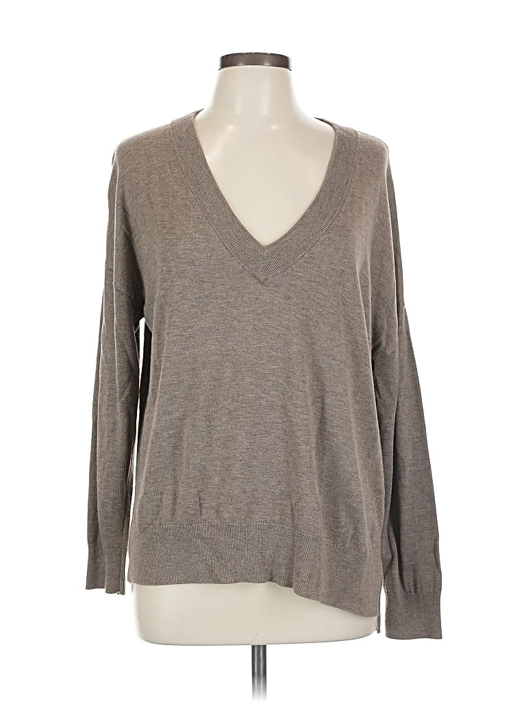 Treasure & Bond Pullover Sweater, Size: Large. Item Details: Gray, Plunge Neckline, Long Sleeve, Women's Tops, Viscose/Nylon/Polyester