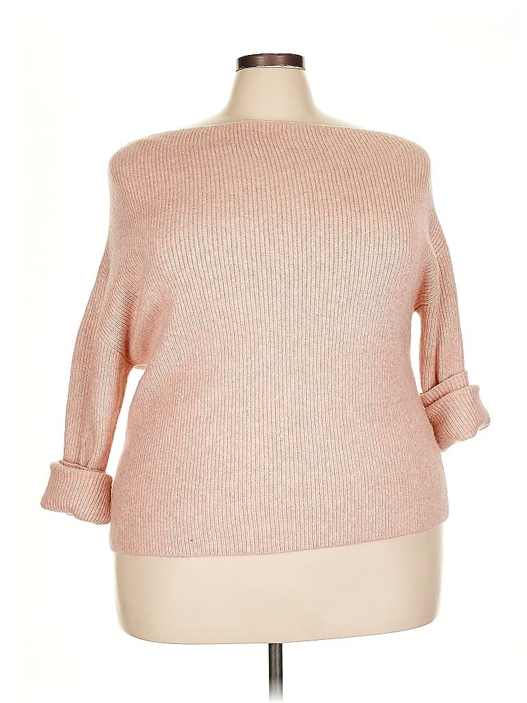 Treasure & Bond Pullover Sweater, Size: Large. Item Details: Pink, Boatneck, 3/4 Sleeve, Women's Tops, Acrylic/Polyester/Cotton