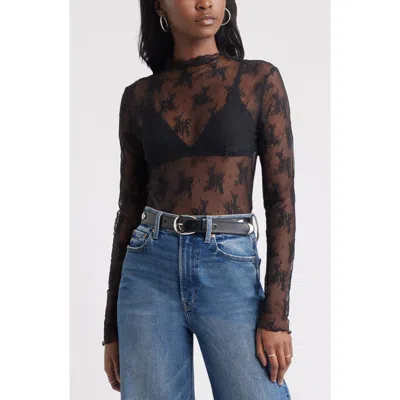 TREASURE & BOND Sheer Lace Top In Black