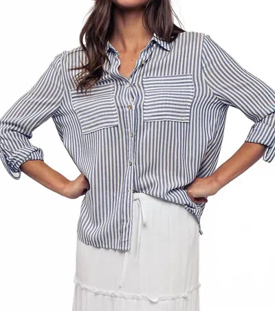 Perfectly tailored and soft to the touch.Embrace the effortless style of the Button Up Stripe Top by Trend - notes, crafted for the modern woman. With long sleeves and a classic collar neckline, this top is made from breathable cotton, perfect for spring occasions like Easter. The button-up design features a chic stripe pattern in a refreshing blue color, complete with a practical pocket detail. Ideal for layering or wearing alone, this versatile piece offers easy elegance for any holiday party.