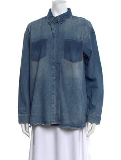 Pre-owned Long Sleeve Button-up Top In Blue