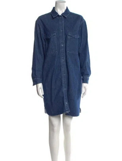 Triarchy Shirtdress Blue Long Sleeve with Collar | Triarchy Mini Dress in Blue, Women's XS