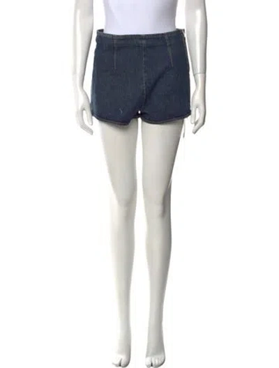 Triarchy Shorts Blue Mid-Rise Medium Wash Zip Closure | Triarchy Mini Shorts in Blue, Women's M