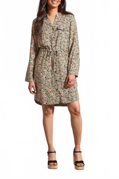 TRIBAL Floral Print Button Down Dress With Drawstring In Cacti In Brown