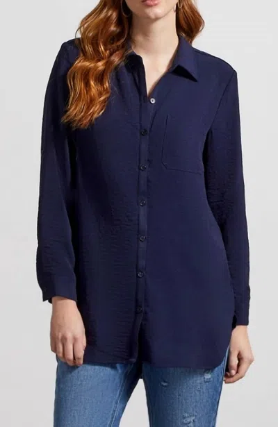 TRIBAL Pebbled Crepe Roll Sleeve Tunic In Nightfall In Blue