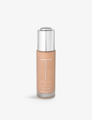 If there's anyone we trust to help us craft a seamless base, it's Trish McEvoy. The make-up artist has spent the last 40 years perfecting her craft, after all. And it appears her latest foundation lives up to every expectation. Introducing: Gorgeous®, a hybrid formula fusing skincare ingredients like hyaluronic acid and niacinamide with long-wearing pigments and a second-skin finish to allow your complexion to glow just as much when covered as it does bare.| Trish McEvoy Gorgeous® foundationApplication: apply a small amount of foundation onto your fingertips, a brush, or the back of your hand. Blend into skin beginning at the centre of your face and moving outwardSkin type: suitable for all skin typesCruelty free30mlMade in USAFor hygiene reasons, this product cannot be exchanged or refunded, unless faulty.