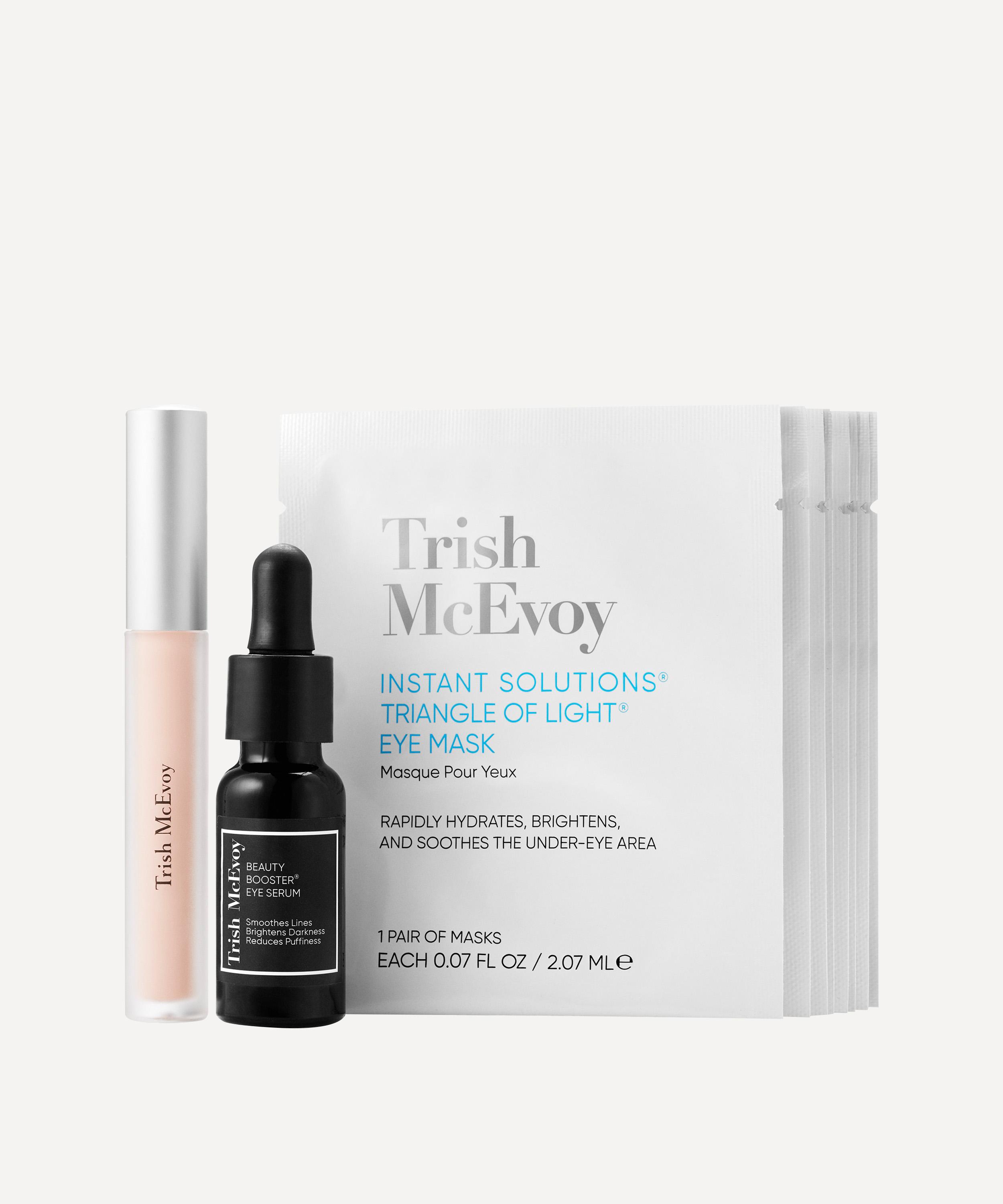 The perfect restorative solution for tired eyes, Trish Mcevoy's instant solutions trio features three fast-acting under-eye treatments for an instantly brightened, lifted and more rested look. Give eyes a much-needed boost with three of Trish Mcevoy's best-selling eye essentials - the instant solutions� triangle of light� eye mask, beauty booster� eye serum and instant eye lift�. Working to reduce the appearance of lines, darkness and puffiness under the eyes, this limited edition trio is the ideal gift for a skin care fanatic, or a perfect opportunity for a moment of essential self-care.