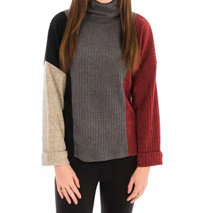 Multi Color Block Turtleneck Sweater In Charcoal In Pink