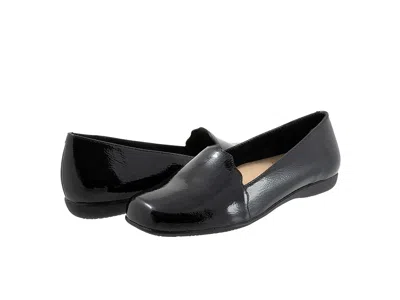 Trotters Sage - Women's Shoes : Black Patent : Get compliment for your elite choice wearing the flattering Trotters Sage loafers. ; Man-made upper with scallop detailing. ; Microfiber polyester lining. ; Removable memory foam footbed. ; Square toe silhouette. ; Easy slip-on style. ; Durable rubber outsole. ; Imported. Measurements: Heel height: 5/8; Weight: 6 ounces. ; Weight of footwear is based on a single item, not a pair. | Trotters Sage Women's Shoes Black Patent : 9 M (B)