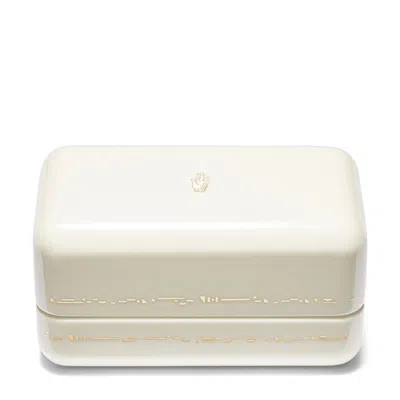 We Do Double Ring Box in White: Ready to ship in 2 business days.*Ships to contiguous US only.*Gift messages unable to be accommodated. This sweet jewelry box is designed to hold two rings, side by side. It comes in classic bridal white and a pretty pastel green. The highly lacquered wood is finished with delicate gold-tone inlay and brass-plated hardware. It’s convenient for travel but also looks pretty sitting on your dresser at home.(The insert is removable—consider stashing a love note or another tiny memento beneath it to keep with you throughout the years.) Handcrafted Width: 4"; height: 2.2"; depth: 2".