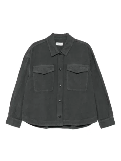 grey corduroy texture button fastening long sleeves two flap pockets classic collar