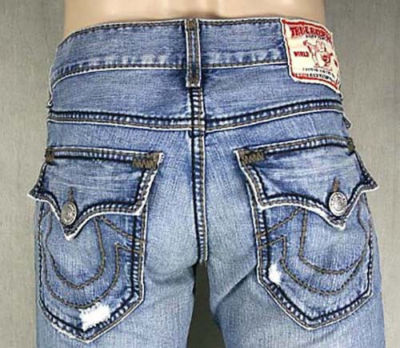 True Religion Jeans Mens RICKY Giant Big T High Plains 24859BGGBT True Religion Jeans Mens RICKY Giant Big T High Plains 24859BGGBT This listing is for a men's pair of True Religion jeans. The style is called Ricky Giant Big T. The color is F4-High Plains. Style #24859BGGBT All of the original tags are attached. They are 100% cotton and a light denim with big t taupe and black stitching. These jeans have small tears and holes. the classic Buddha print is on the inside of the pockets. They are brand new, never worn and guaranteed authentic.