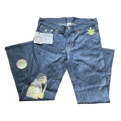 <div>True Religion Jimi Hendrix Skull Drugs Weed UFO Alien Denim Jeans Flap 38x36 Men RARE. Patches sewn all over jeans. Brand new with tags. Size tag says 36x33 but actual measurements are 36x36. See photos.</div>
