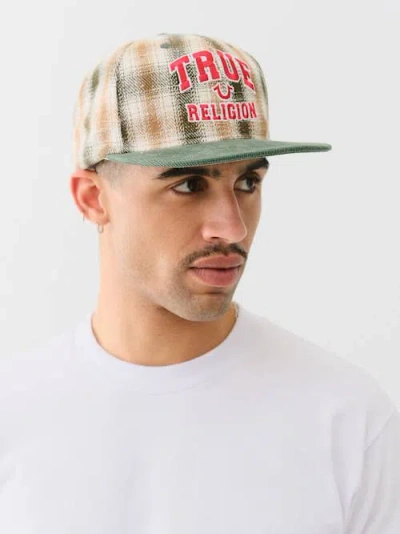 Keep it classy up top with the True Religion Plaid Hat. This cap features a plaid design with a green, flat brim, and an adjustable back strap. Finished with an embroidered True Religion logo. True Religion Plaid Hat | Multi.