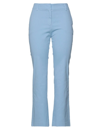 twill, no appliqués, solid color, mid rise, flared cut, regular fit, zipper closure, hook-and-eye closure, multipockets, stretch , Color: Sky blue , Size: 8