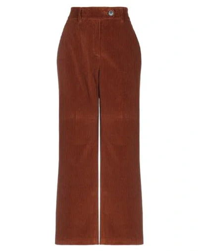 velvet, ribbed, no appliqués, solid color, high waisted, regular fit, wide leg, button, zip, multipockets, stretch , Color: Rust , Size: 2