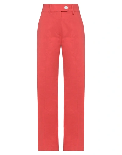 plain weave, no appliqués, solid color, high waisted, straight leg, regular fit, multipockets, stretch, chinos , Color: Red , Size: 2
