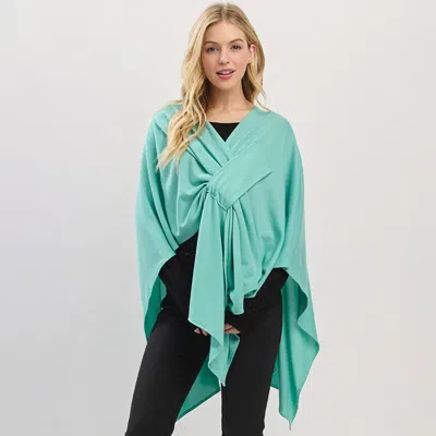 TRUEDAMES Asymmetrical Hem Solid Pull Through Draped Tie-front Wrap Poncho In Green