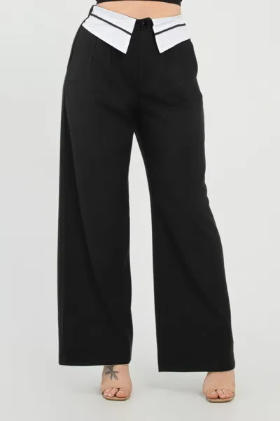 Front Button Fold-over Inside Zipper Pants In Black