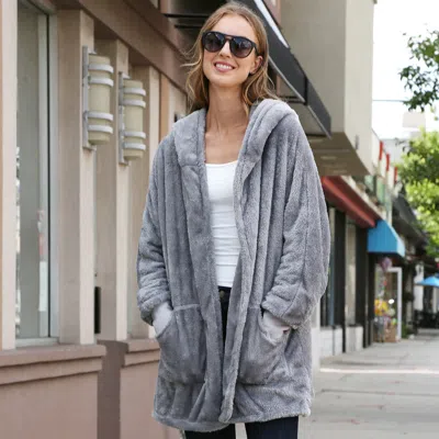 TRUEDAMES Front Pockets Oversized Solid Hoodie Jacket In Gray
