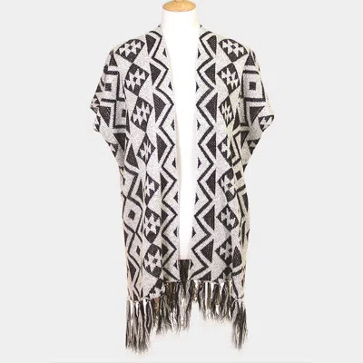 TRUEDAMES Geometric Pattern Fringe Edge Angora Poncho In Multi