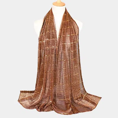 Sheer Solid Color Sparkling Metallic Line Patterned Lightweight Scarf / Shawl In Brown