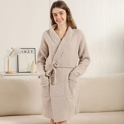 Size - One SizeMaterial - 100% Poly MicrofiberKeep it classic with this solid knit robe, featuring a clean design, tie belt, and front pockets. Ideal for versatile, cozy loungewear that never goes out of style.