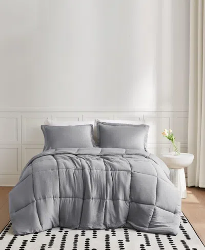 TRULY SOFT Garment Wash Solid Comforter Set In Gray