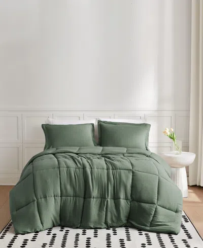 TRULY SOFT Garment Wash Solid Comforter Set In Green