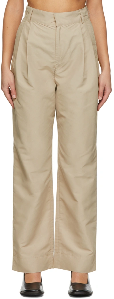 Polyester taffeta trousers. · High-rise · Belt loops · Zip-fly · Central crease · Four-pocket styling Supplier color: Beige