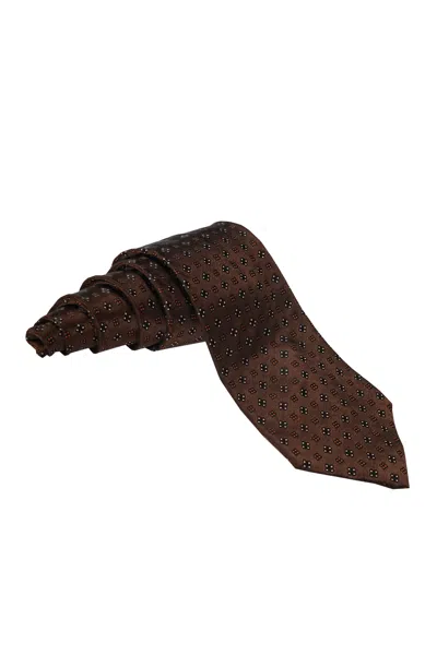 TRUSSARDI Geometric Micro-pattern Silk Tie In Brown